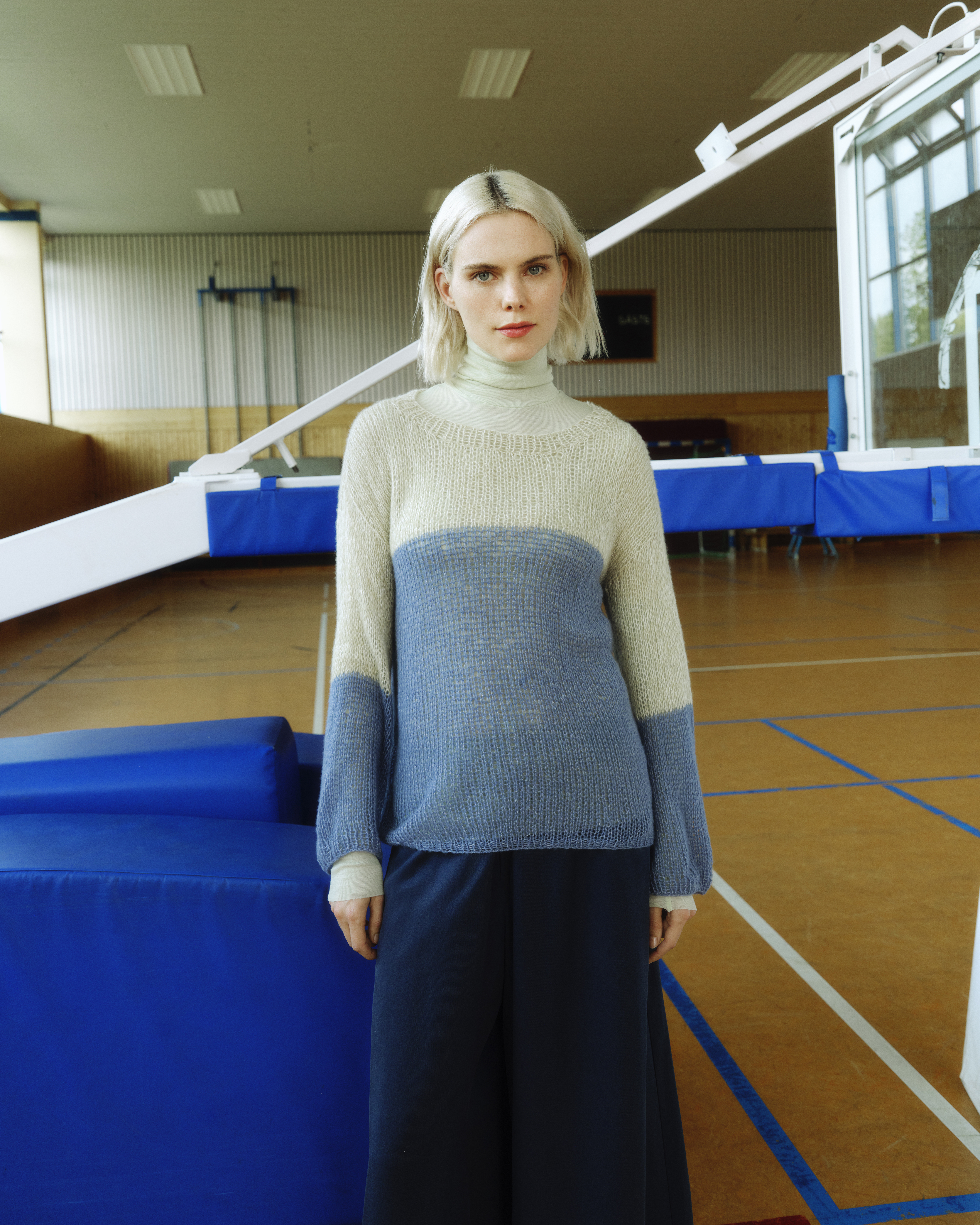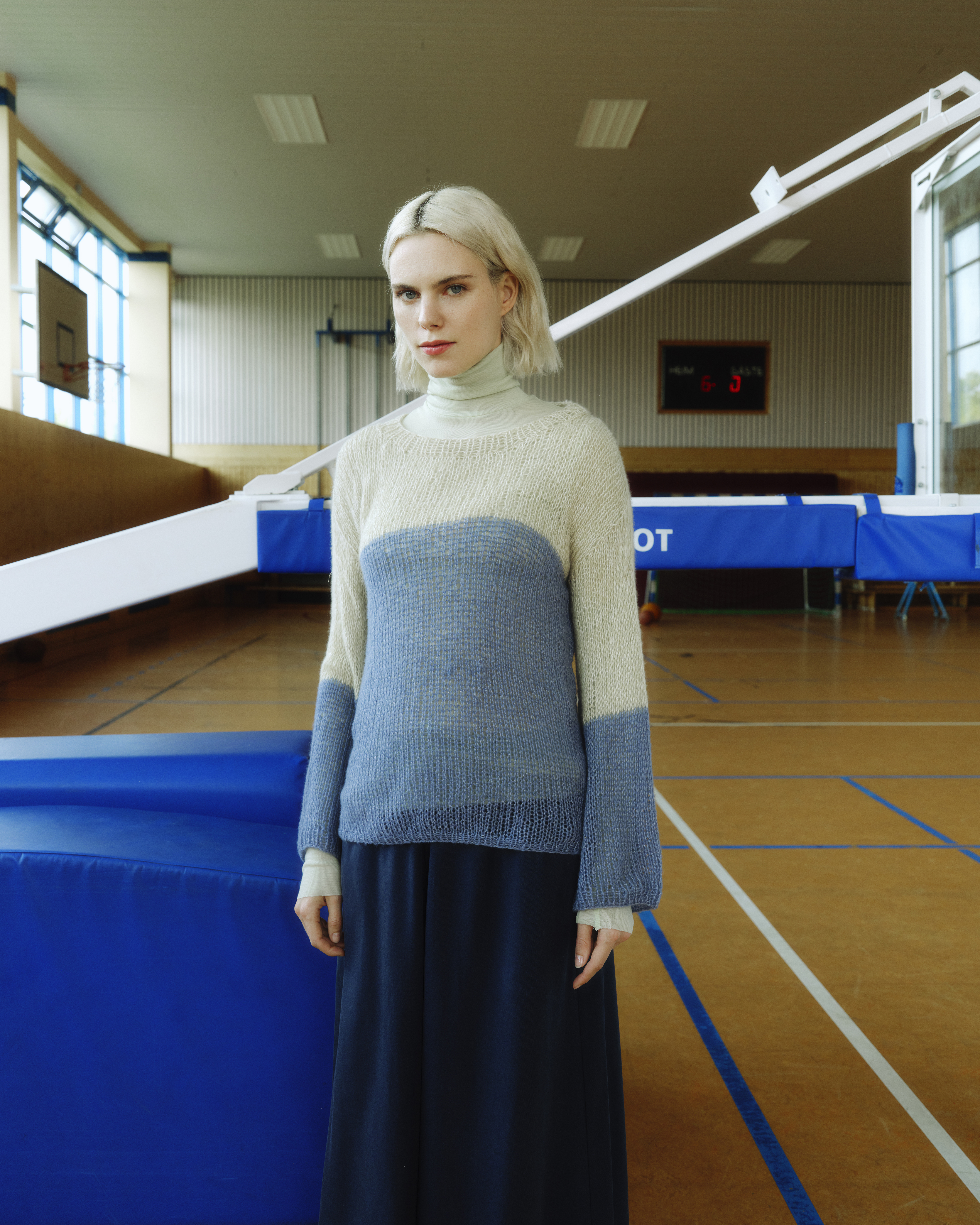 Colourblocking deluxe: #pullover_laerke wird aus einem edlen Kaschmir-Seiden-Garn in drei verschiedenen Farben gestrickt. Vorder- und Rückteil werden separat gearbeitet. Die Ärmel werden eingesetzt und das Halsbündchen am Ende angestrickt.